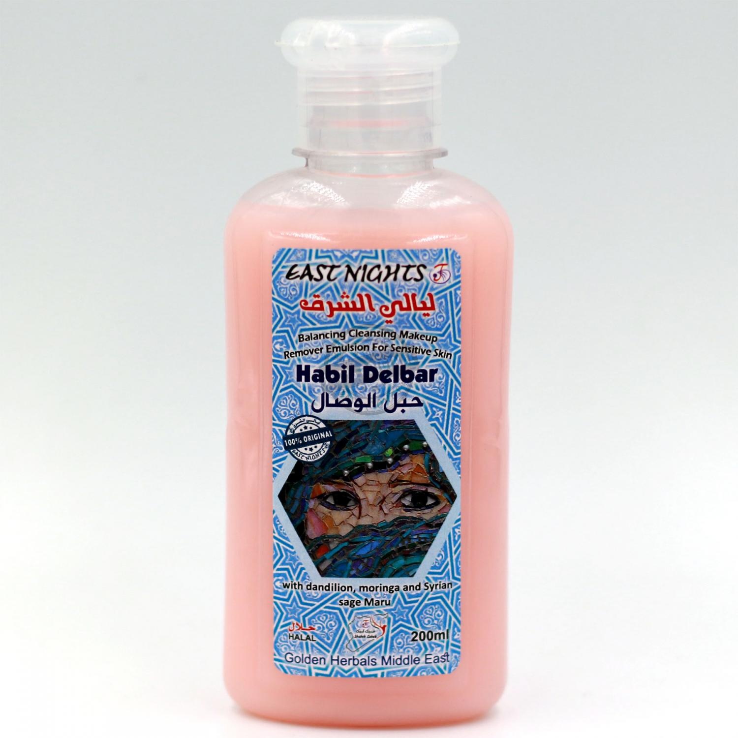 Национальное сирийское производство EAST NIGHTS ® ПРИРОДНАЯ ИНДИВИДУАЛЬНАЯ ТЕРАПИЯ И ПРОФИЛАКТИКА Балансирующая глубоко очищающая эмульсия для снятия макияжа с дамасской розой для чувствительной кожи DELBAR «Очаровательная» _________________________________________________________ Balancing cleansing makeup remover emulsion with damask rose for sensitive skin ShL-FA-01 Очарование, молодость, свежесть и нежность… Кожа принцессы, глаза – васильки голубые. В мыслях ее – упоение и безмятежность. Сердце ее – это жаркое сердце богини… Чтобы найти идеальную эмульсию для снятия макияжа, нужно постараться. Как правило, вариантов два: или она плохо смывает косметику и на спонже остаются следы туши и тонального крема; или смывает она превосходно, но стягивает кожу лица так сильно, что причиняет дискомфорт. Есть ли альтернатива? Конечно, есть. Балансирующая глубоко очищающая эмульсия для снятия макияжа DELBAR «Очаровательная» не только удалит косметику и глубоко очистит кожу, но и обеспечит ее витаминами и микроэлементами, как будто вы не просто умылись, а посетили кабинет косметолога. Входящее в состав этой драгоценной эмульсии эфирное масло дамасской розы сбережет вашу свежесть, ведь роза – мастерица по части омолаживания. Эфирное масло шалфея не только очистит кожу, но и обеззаразит ее и защитит от вредного воздействия ультрафиолета. А гидролат гамамелиса успокоит раздраженную и воспаленную кожу и вернет ей здоровый цвет. Косметические свойства балансирующей глубоко очищающей эмульсии для снятия макияжа с дамасской розой для чувствительной кожи DELBAR «Очаровательная» * Оливково-лавровая эмульсия оливки сирийского сорта Абу-Сатл – это полностью натуральная природная основа, в которую специалисты компании East Nights, словно в живую воду, добавляют остальные ингредиенты. Она увлажняет кожу, очищает ее и насыщает витаминами и микроэлементами. * Эфирное масло соцветий дамасской розы – это королевское масло, в короткие сроки преображающее увядающую и тусклую кожу. Розовое масло регенерирует ее, возвращает ей упругость и эластичность, разглаживает морщины, осветляет пигментные пятна и освежает. * Эфирное масло листьев шалфея сирийского Мару универсально в применении: оно подходит и для молодой, и для зрелой кожи, способствует регенерации, разглаживает морщины, устраняет воспаления. * Эфирное масло соцветий марокканской ромашки улучшает цвет лица, выравнивает рельеф кожи, устраняет воспаления, разглаживает мелкие морщины, делает кожу мягкой и бархатистой. * Эфирное масло соцветий лаванды колосковой содержит витамины A и C, кальций, натрий, железо и другие полезные элементы. Оно смягчает кожу, возвращает ей естественный цвет, устраняет раздражения и покраснения, осветляет веснушки и пигментные пятна, обновляет клетки кожи и способствует омоложению. * Эфирное масло листьев медового мирта успешно борется с акне и угревой сыпью, обладает антиоксидантными свойствами, заживляет микроповреждения кожи, способствует регенерации. * Жирное масло семян клещевины занзибарской превосходно увлажняет, осветляет пигментные пятна, борется с воспалениями, обладает антибактериальным эффектом, стимулирует выработку коллагена, устраняет шелушения и выравнивает поверхность кожи, делая ее бархатной и сияющей. * Жирное масло семян айвы продолговатой содержит богатый комплекс витаминов: A, C и группы B. А также кальций, мед