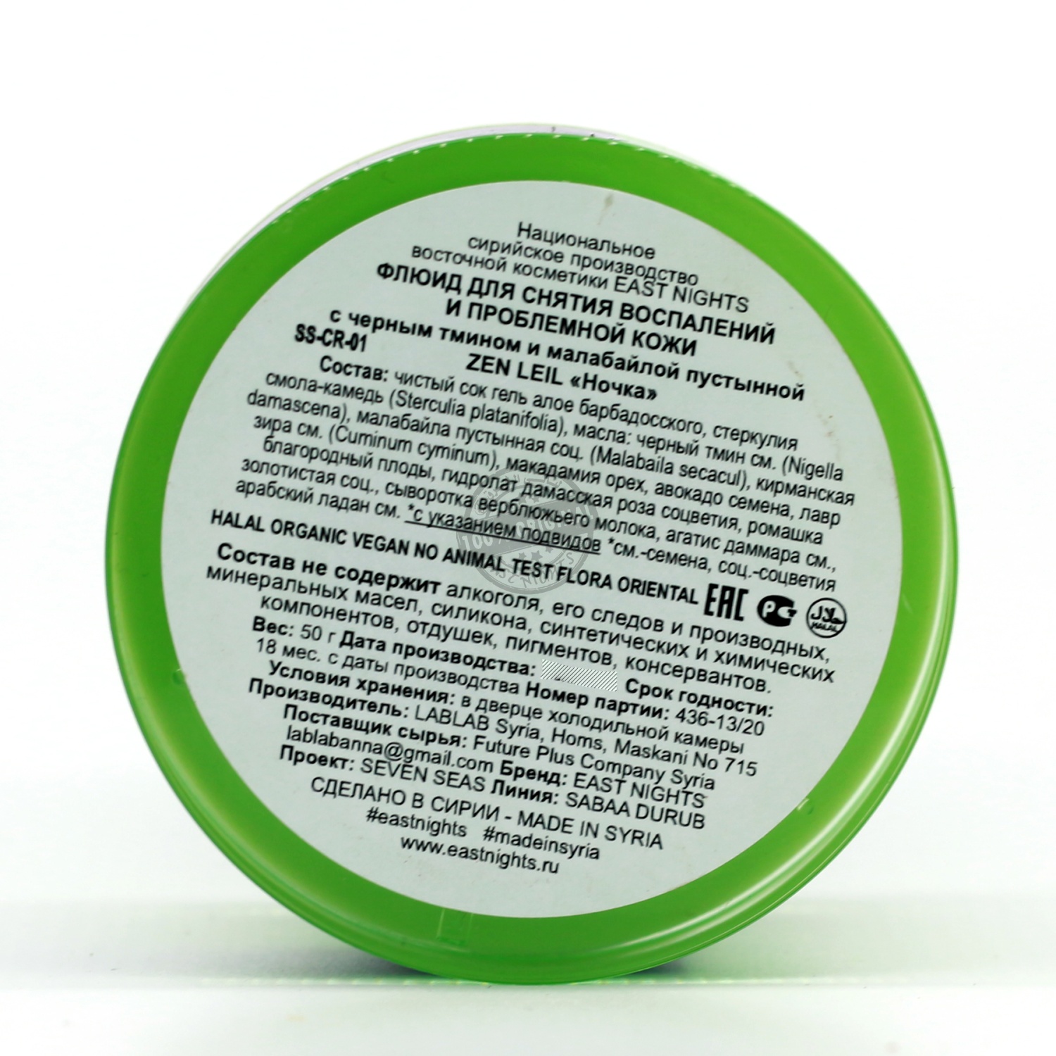 Флюид для снятия воспалений и проблемной кожи лица и тела с черным тмином и малабайлой пустынной ZEN LEIL "Ноченька"