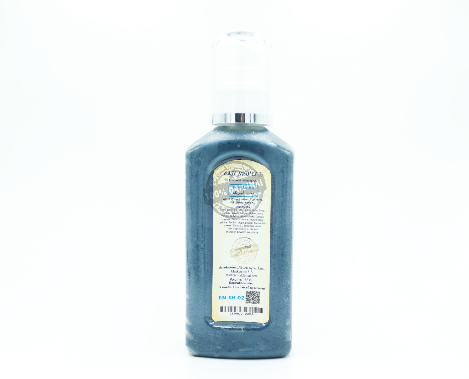 Национальное сирийское производство EAST NIGHTS ® ПРИРОДНАЯ ИНДИВИДУАЛЬНАЯ ТЕРАПИЯ И ПРОФИЛАКТИКА НАТУРАЛЬНЫЙ ВОССТАНАВЛИВАЮЩИЙ ШАМПУНЬ BINT BARAKA «Дочь Благословения» © С ЧЕРНЫМ ТМИНОМ ИЗ СИРИИ, ЭФИОПИИ, ЙЕМЕНА Черный тмин регионов Кесаб (Сирия), Аскори (Эфиопия), Баадан (Йемен) ___________________________________________ Natural revitalizing shampoo with Black cumin from Syria, Ethiopia, Yemen EN-SH-02 Каждый сорт черного тмина имеет свои особенности и характеристики, так как они имеют разный природный химический состав. Производство East Nights, соединив уникальные свойства тмина из трех регионов в одном флаконе, выпустило не просто органический шампунь, но целебное средство для кожи головы и луковиц волос. Натуральный восстанавливающий шампунь Bint Baraka «Дочь Благословения» укрепляет волосы и препятствует их выпадению. Восстанавливает структуру волос, повышает густоту волосяного покрова, предотвращает ломкость и рассечение волоса. Еще одной особенностью шампуня с тмином является придание волосам объема. Традиционная оливковая эмульсия, используемая East Nights в качестве основы шампуней и являющаяся важнейшим проводником ценных веществ, помогает усилить терапевтический эффект в разы. Черный тмин (или калинджи, чернушка посевная, сейдана, седана, нигелла, римский кориандр) известен с незапамятных времен как мощнейшее средство от многих болезней. Характерный лечебный запах масла обусловлен содержанием душистого вещества – карвона. Масло черного тмина сирийского используется для лечения кожных заболеваний. Действует направленно при себорее, выпадении волос, при наличии перхоти, дерматитов и дерматозов. Масло черного тмина эфиопского обладает ярко выраженным бактерицидным и антисептическим действием, укрепляет иммунную систему. Ухаживает за кожей головы при аллергических дерматитах, себорее и выпадении волос. Масло черного тмина йеменского оказывает рассасывающее, тонизирующее, регенерирующее действие. Глубоко очищает кожу головы, предотвращает выпадение волос, лечит себорею. Ценный растительный состав шампуня нормализует секрецию сальных желез и предотвращает быстрое загрязнение волос. Такой эффект особенно полезен для оздоровления кожи жирного типа. Пудра белого мыльного корня применяется для пенообразования вместо промышленных ПАВ. Белый мыльный корень качима метельчатого (гипсофилы) прекрасно очищает волосы от загрязнений и дарит им легкость и объем. Консервация и загущение состава осуществляется посредством смол. Природная смола стиракса исцеляет ослабленные и ломкие волосы, укрепляет их, эффективно борется с выпадением. Способствует естественной консервации и сохранению всех лечебных свойств шампуня. Смола ладана оманского обладает антисептическим действием. Укрепляет волосы, борется с их выпадением. Улучшает состояние кожи головы, устраняет перхоть и зуд, делает волосы шелковистыми и послушными. Натуральный восстанавливающий шампунь Bint Baraka «Дочь Благословения» с черным тмином производства East Nights не содержит алкоголя, минеральных масел, синтетических и химических компонентов, отдушек, пигментов и консервантов. Продукт изготовлен из живых растений и обеспечивает природный уход за волосами. 100% VEGAN, не тестируется на животных.